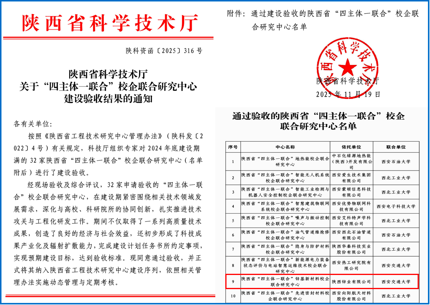 近来,陕西省科学技能厅发布了2024年末建造期满的32家“四主体一联合”校企联合研究中心(以下简称“研究中心”)的检验成果。由西安交通大学资料学院与陕西锌业有限公司联合组成的陕西省“四主体一联合”锌基新资料校企联合研究中心顺畅经过检验,正式归入陕西省工程技能研究中心建造序列。这标志着校企两边在锌基新资料范畴的产学研协同立异与深层次地交融开展获得了重要打破。 2025年6月26日,陕西省科学技能厅安排专家对“四主体一联合”校企联合研究中心进行检验,经过现场检验、辩论环节及归纳评议,专家组共同以为,陕西省“四主体一联合”锌基新资料校企联合研究中心在建造期内严密环绕建造使命,厚实推动技能攻关与工程化,完结建造规划使命书所约好事项,完成预期建造方针,达到了检验规范,赞同经过检验,并正式将其归入陕西省工程技能研究中心建造序列,按照相关办理办法施行动态办理与定时查核。 该研究中心自建造以来,严密环绕锌基新资料有关技能范畴的开展需求,经过深化产学研协作,活跃饯别西安交通大学“6352”工程和“1121”形式,厚实推动锌基复合资料、生物可降解与高导热锌合金、高纯金属、锌基合金大塑性变形等有关技能研制,获得20余件授权创造专利(含美国、日本创造专利5件),获包含我国创造创业奖立异奖一等奖在内的科技成果3项,研制出丝、棒、板多标准高性能锌合金产品,形成了从基础研究到产业化的完好立异链条。 下一条:【新华社半月谈官网】管晓宏院士:氢能破局“不可能三角”,我国计划引领零碳动力革新